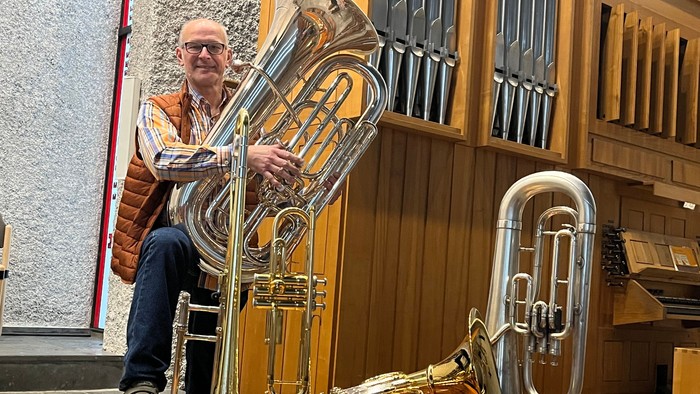 Udo Dietz ist ein Kind der Gemeinde und hat schon in jungen Jahren nach Blockflöte, Gitarre und elektrischer Orgel auch die Tuba für sich entdeckt. Mit einem zuvor seit Jahren nicht genutzten Blechblasinstrument aus dem Besitz der Gemeinde übte er und spielte bald mit im Posaunenchor, der damals von Dieter Dreesbach geleitet wurde. Als der das Amt abgeben wollte, kam Udo Dietz ins Spiel. Damals war er frisch im Studium zum Musikpädagogen und hätte sich kaum vorgestellt, dass er das Ensemble vier Jahrzehnte lang führen und eine kom-plette Neuausrichtung in Gang setzen würde. Zunächst spielte der Posaunenchor vor allem Musik in den Gottesdiensten, befasste sich mit Chorälen und Kantaten und trat, wie es die Tradition verlangte, in reiner Blechbesetzung beispielsweise mit Trompete, Posaune und Flügelhorn auf. Durch diverse Lehrgänge kam Udo Dietz in Berührung mit anderen Musikstilen, die von Blechbläsern gespielt werden können, beispielsweise Pop, Balladen, Jazz und Spirituals.